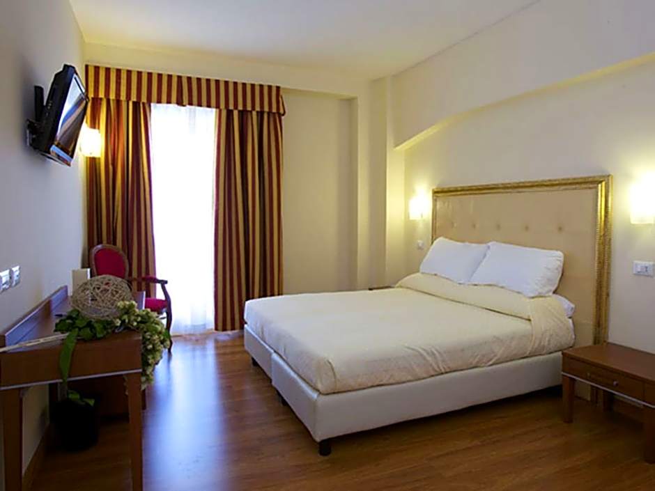 Double or twin standard is 269 square feet and includes either a queen-size bed 150-154 width or 2 single beds 80-130 width plus extra beds on demand, desk, satellite tv , cable tv, hairdryer, ironing set, safe, and slippers.